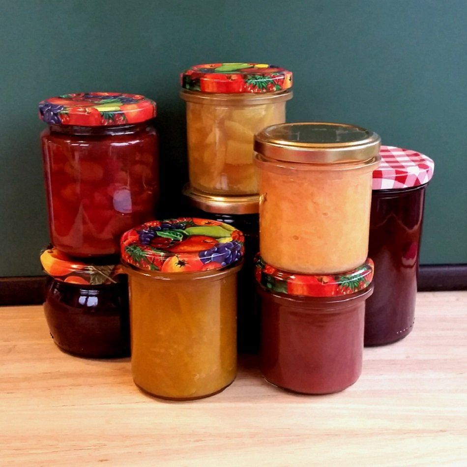 Je 1 kg Fruchtstücke, 1 Zitrone, 100 bis 150 g Honig, 15 bis 20 g Apfelpektin 10 bis 15 Min. köcheln, in Twist Off Gläser füllen.